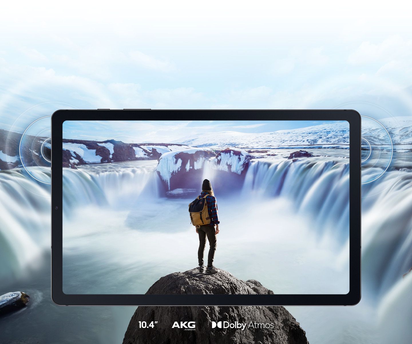 Более тонкая рамка — больше места для большого 10,4-дюймового дисплея на удобном компактном планшете. Наслаждайтесь импровизированным просмотром в парке или дома с двумя динамиками, которые воспроизводят насыщенный 3D-звук в альбомной ориентации.