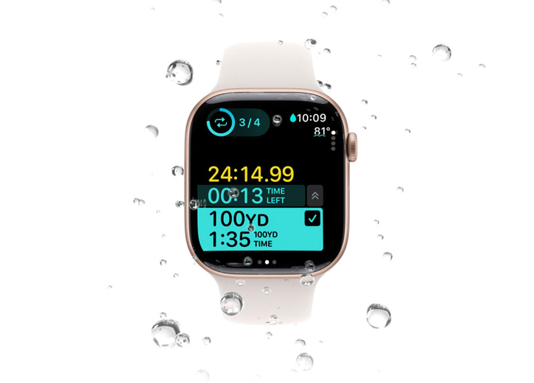 Новый датчик температуры воды дает вам больше информации для ваших тренировок по плаванию . А новый датчик глубины делает Series 10 отличным вариантом для плавания и подводного плавания. Так что вперед, плескайтесь.