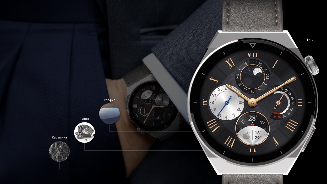 Сапфировое стекло, титановый корпус и керамическая задняя панель обеспечивают отличную устойчивость к износу и комфортное ношение