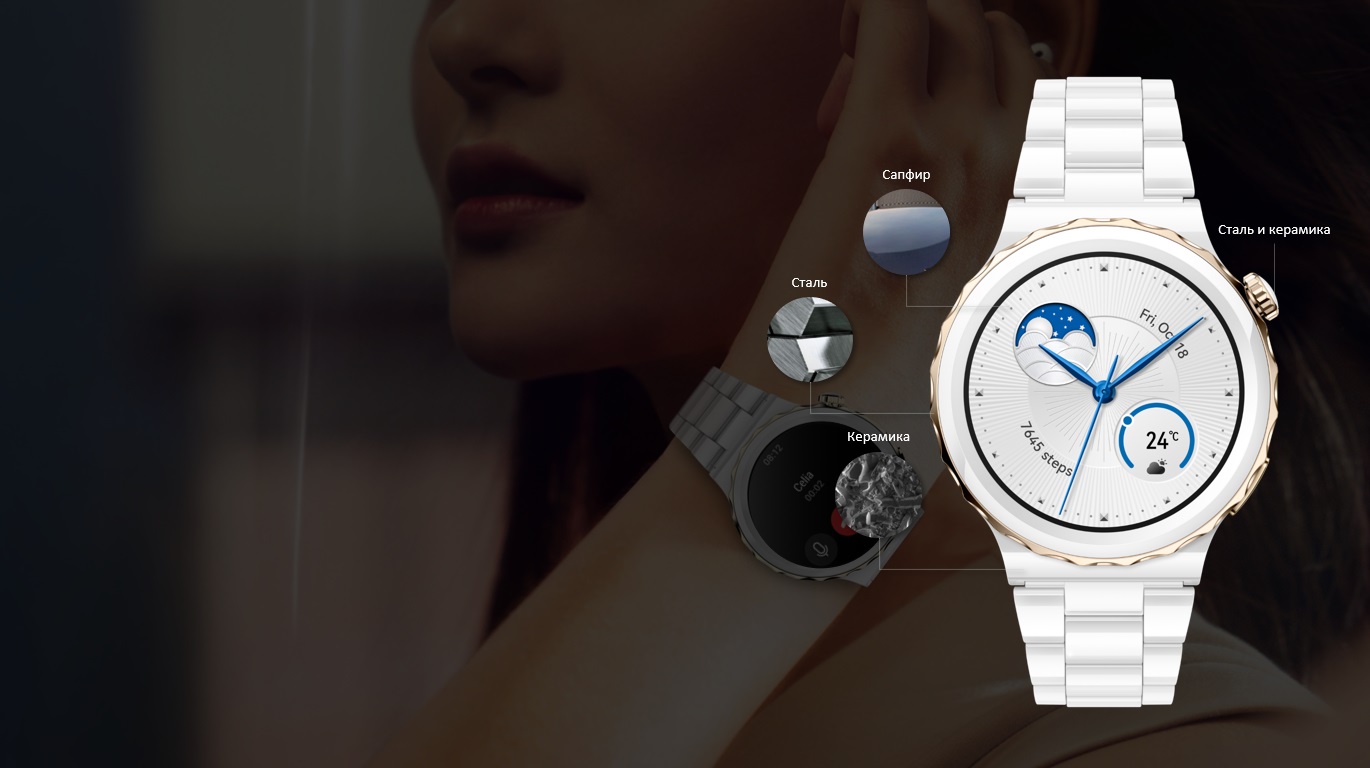 HUAWEI WATCH GT 3 Pro в керамическом корпусе оснащены чрезвычайно прочным сапфирового стеклом, твердость которого составляет 9 баллов по шкале Мооса*, что обеспечивает высокую устойчивость к царапинам и разрушению. Между тем, сапфировое стекло также используется в сенсорной части керамической задней панели для лучшего проникновения света и более точного контроля частоты сердечных сокращений
