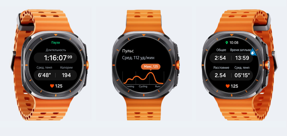 Плавание, водные лыжи, гребля на каяке или виндсерфинг. Galaxy Watch Ultra отслеживает все эти виды спорта и даже больше. Улучшенный датчик BioActive отслеживает пульс даже когда вы занимаетесь серфингом. Легко отслеживайте ваши тренировки в воде с помощью режима блокировки.