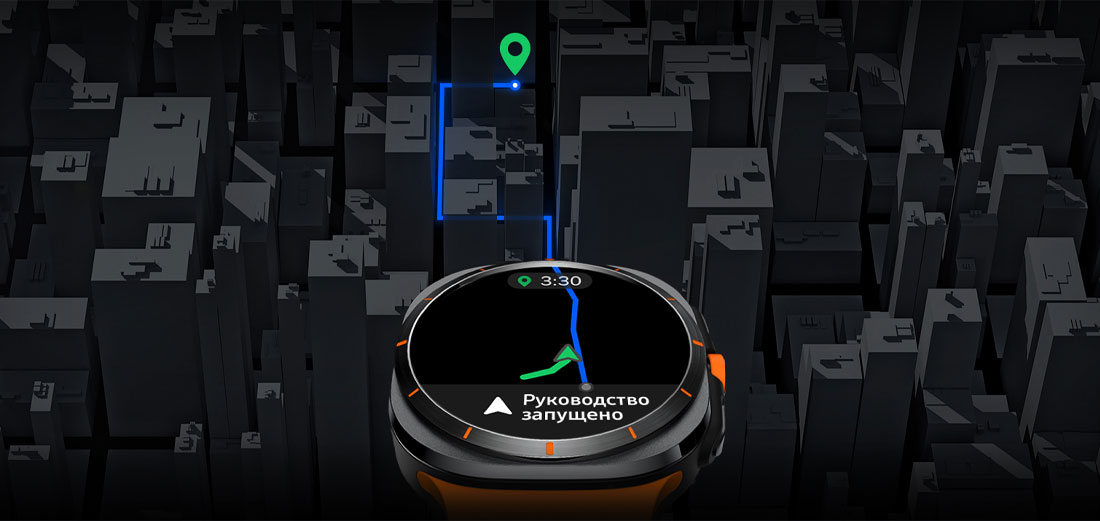 Самый точный модуль GPS, который когда-либо использовался в Galaxy Watch, поможет вам не сбиться с курса даже в мегаполисе. Благодаря использованию двух диапазонов спутникового сигнала (L1 + L5) Galaxy Watch Ultra отслеживает ваше местоположение с высочайшей точностью.