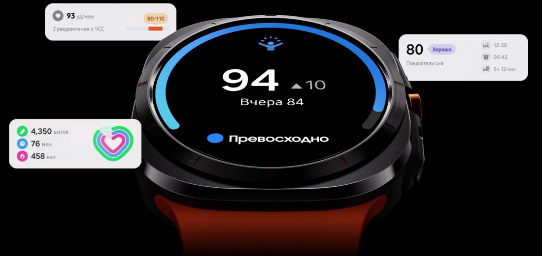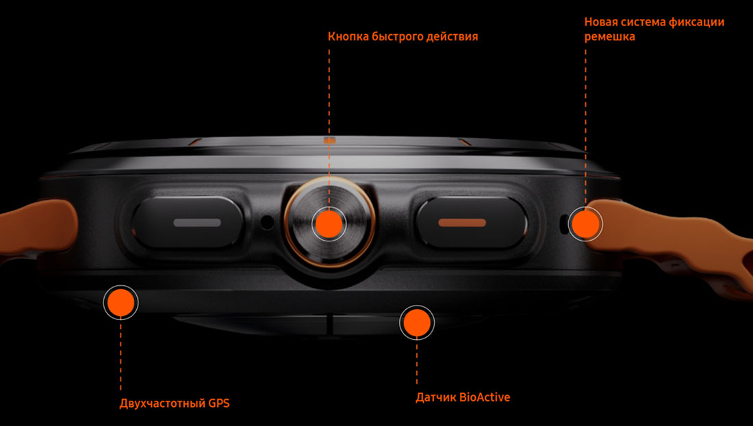 Galaxy Watch Ultra станет надежным спутником даже в самых экстремальных условиях. Рабочая температура от -20 °C до 55 °C. Устойчивость к перепадам высот 9000 м.