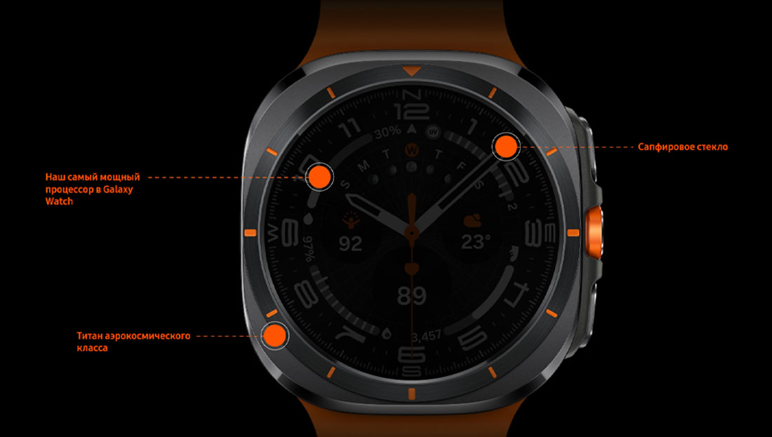 Galaxy Watch Ultra отлично справляются с жарой, адаптируясь как к темноте, так и к яркому солнечному свету и помогают прокладывать маршрут, позволяя вам с легкостью ориентироваться в песках и каньонах. Galaxy Watch Ultra продолжат работать несмотря ни на что.