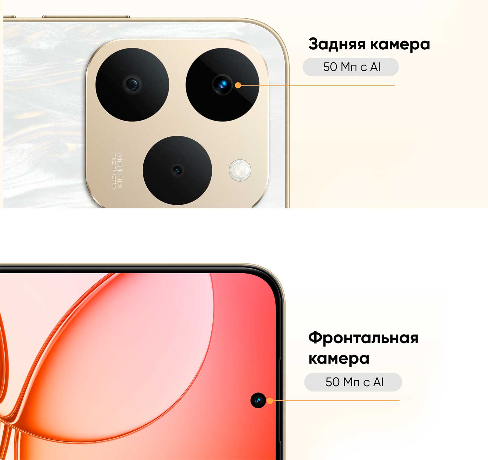 Единственные в сегменте фронтальная и основная камеры 50 Мп + 50 Мп с AI