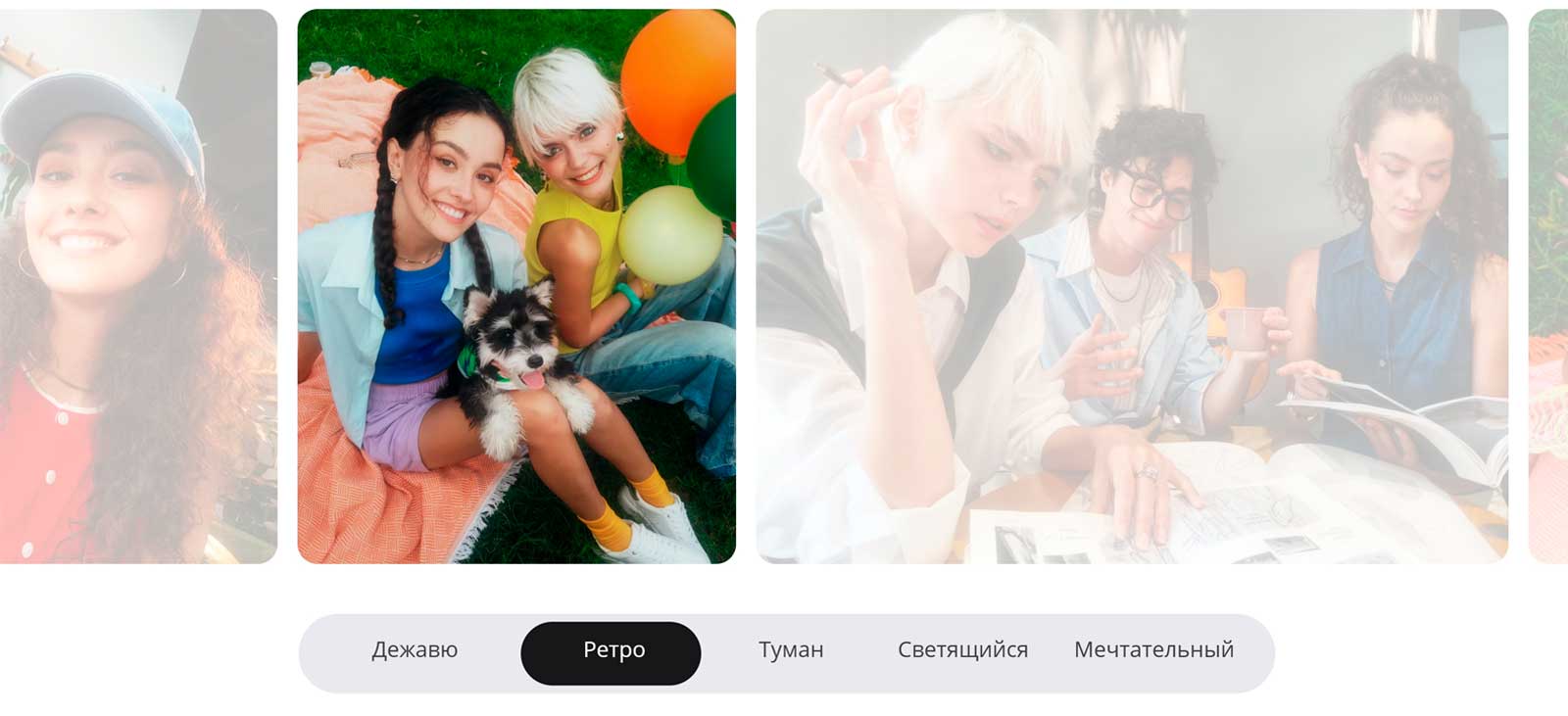 Сияйте. Пять различных портретных фильтров добавят мягкое свечение, превращая мгновения в неземные воспоминания