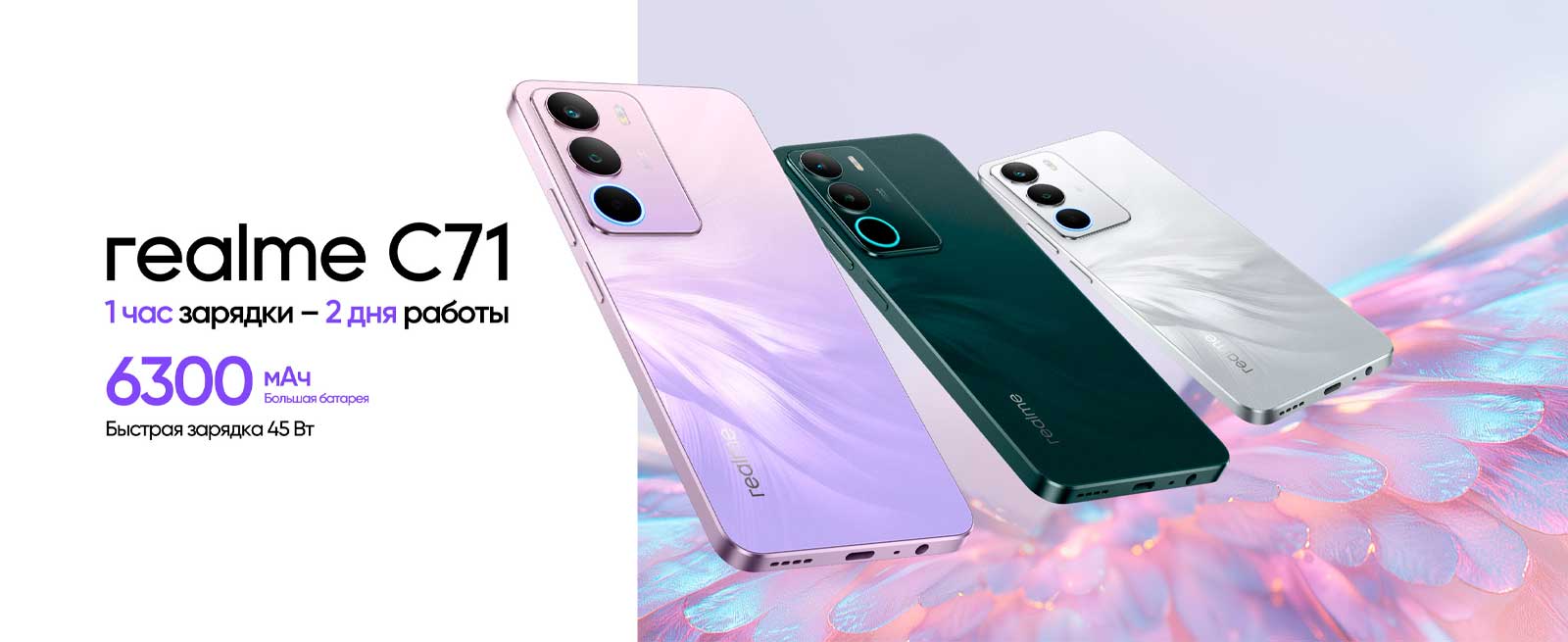 realme C71 защищен от повседневных пролитий жидкости, брызг и пыли. Независимо от того, находитесь ли вы в пути или попали под дождь, он готов работать, куда бы вас ни забросила жизнь