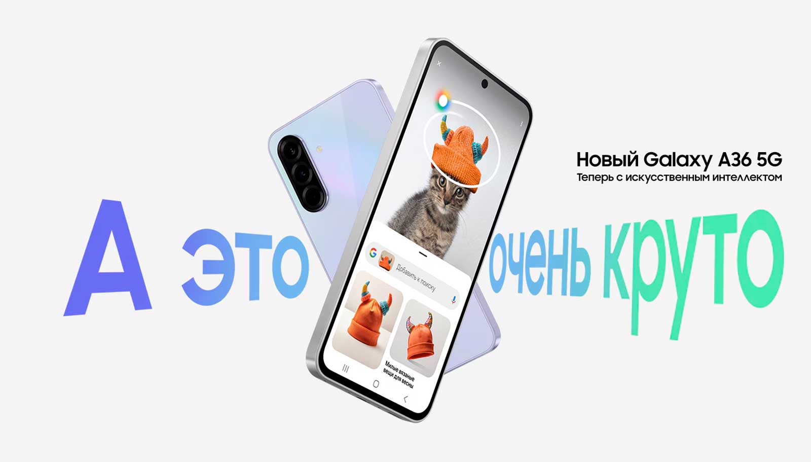 Заявите о себе с новым смартфоном Galaxy A36 5G. Линейное расположение камер, лаконичный дизайн и изящная задняя панель из стекла.