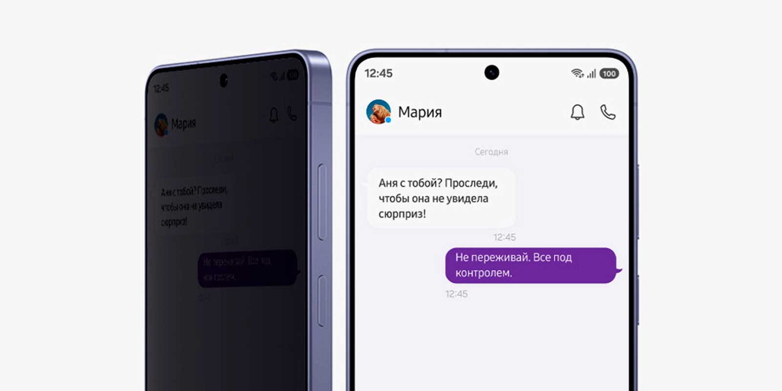 В Galaxy S26 Ultra реализован доработанный экран с защитой от посторонних глаз — под углом изображение становится менее читаемым. Это особенно полезно в общественных местах, при вводе паролей, работе с банковскими приложениями и