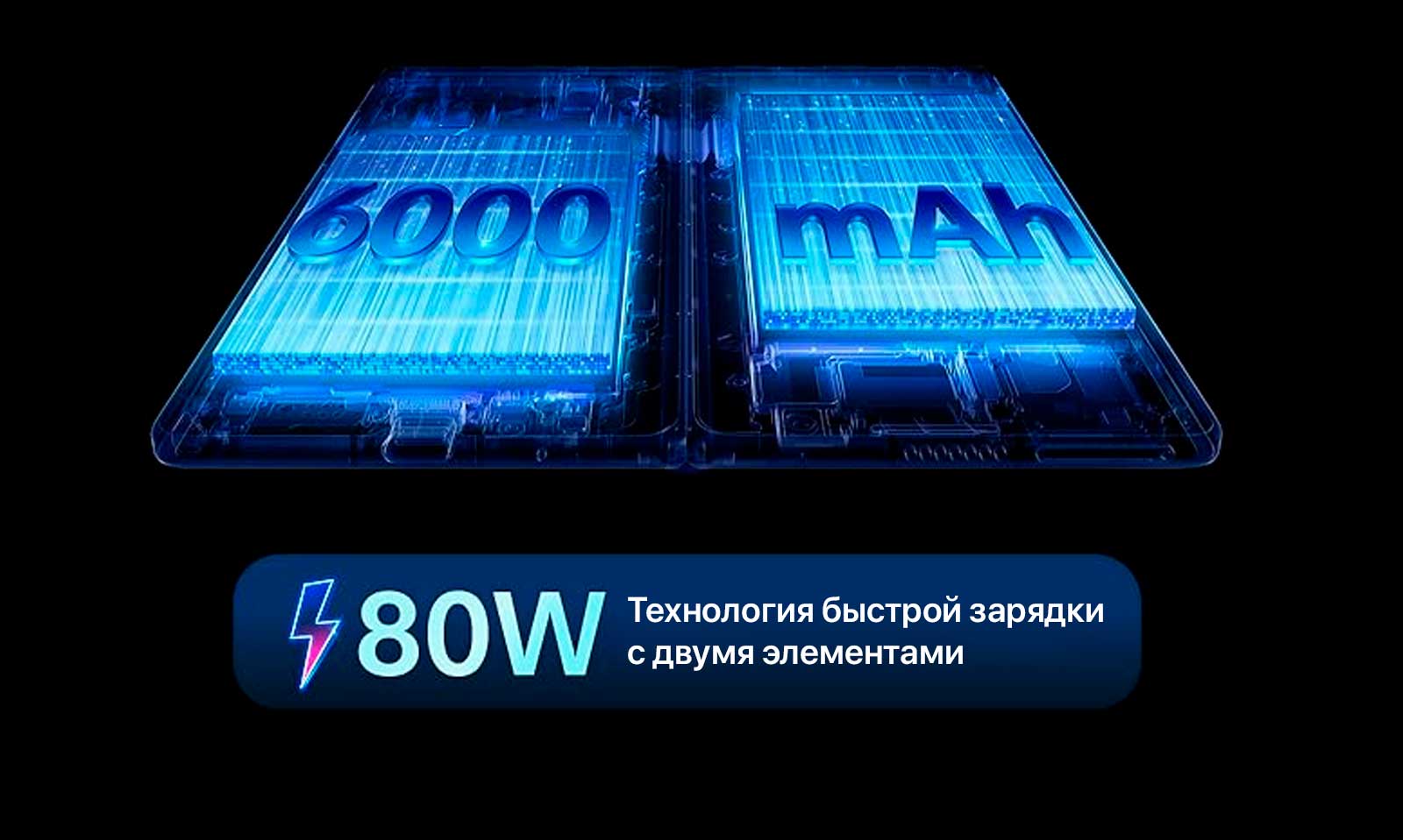 Оснащён самой большой 6000 мАч батареей на кремниевом аноде, что обеспечивает повышенную автономность. Благодаря интеллектуальной системе управления питанием и быстрой зарядке, он создан для превосходной работы.