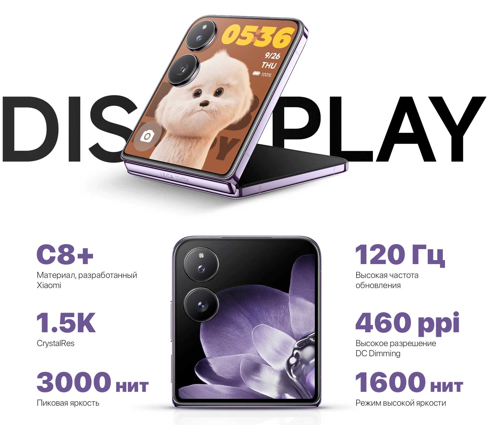 Внешний дисплей выступает в качестве основного дисплея. С легкостью справляйтесь с повседневными задачами с помощью одного только внешнего дисплея Xiaomi MIX Flip, который меняет представление об удобстве использования смартфона.