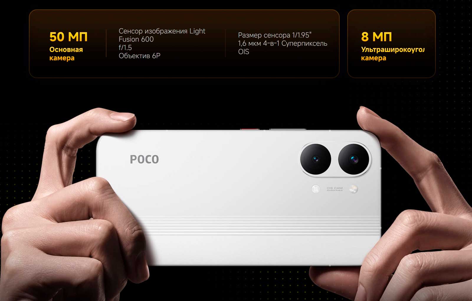 Благодаря большой диафрагме f/1.5 и технологии Dual Native ISO Fusion сенсор Light Fusion 600 обеспечивает четкие, насыщенные снимки даже при слабом освещении или высоком контрасте.