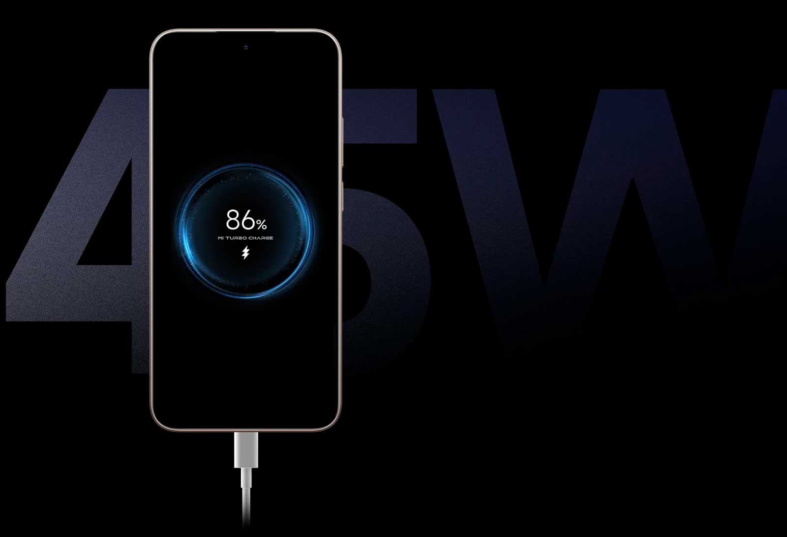 Мощность по требованию. Турбозарядка мощностью 45 Вт обеспечивает уверенную работу, сочетая высокую скорость зарядки и длительное время автономной работы.