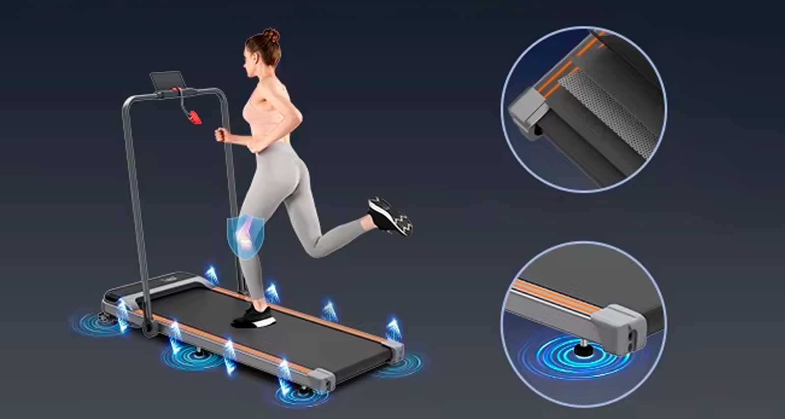 Амортизирующая конструкция беговой дорожки отличается отличным отскоком и еще большей безопасностью. Это снижает нагрузку на коленный сустав и помогает избежать травм.