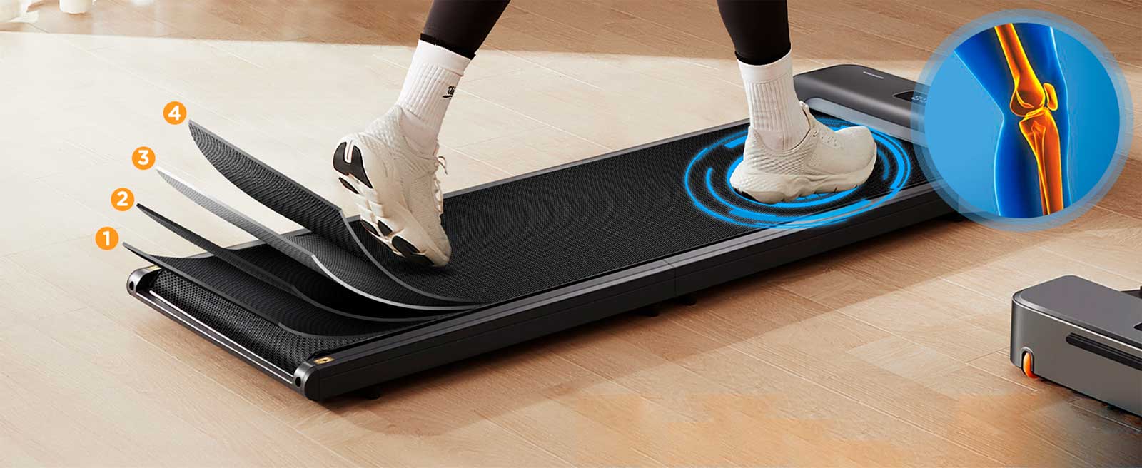 4-слойноя различных материалов обеспечивают комфортные ощущения при использовании дорожки для ходьбы KingSmith WalkingPad Z1. Каждый слой выполняет свою функцию: от амортизации и смягчения ударов до поддержки сцепления с
