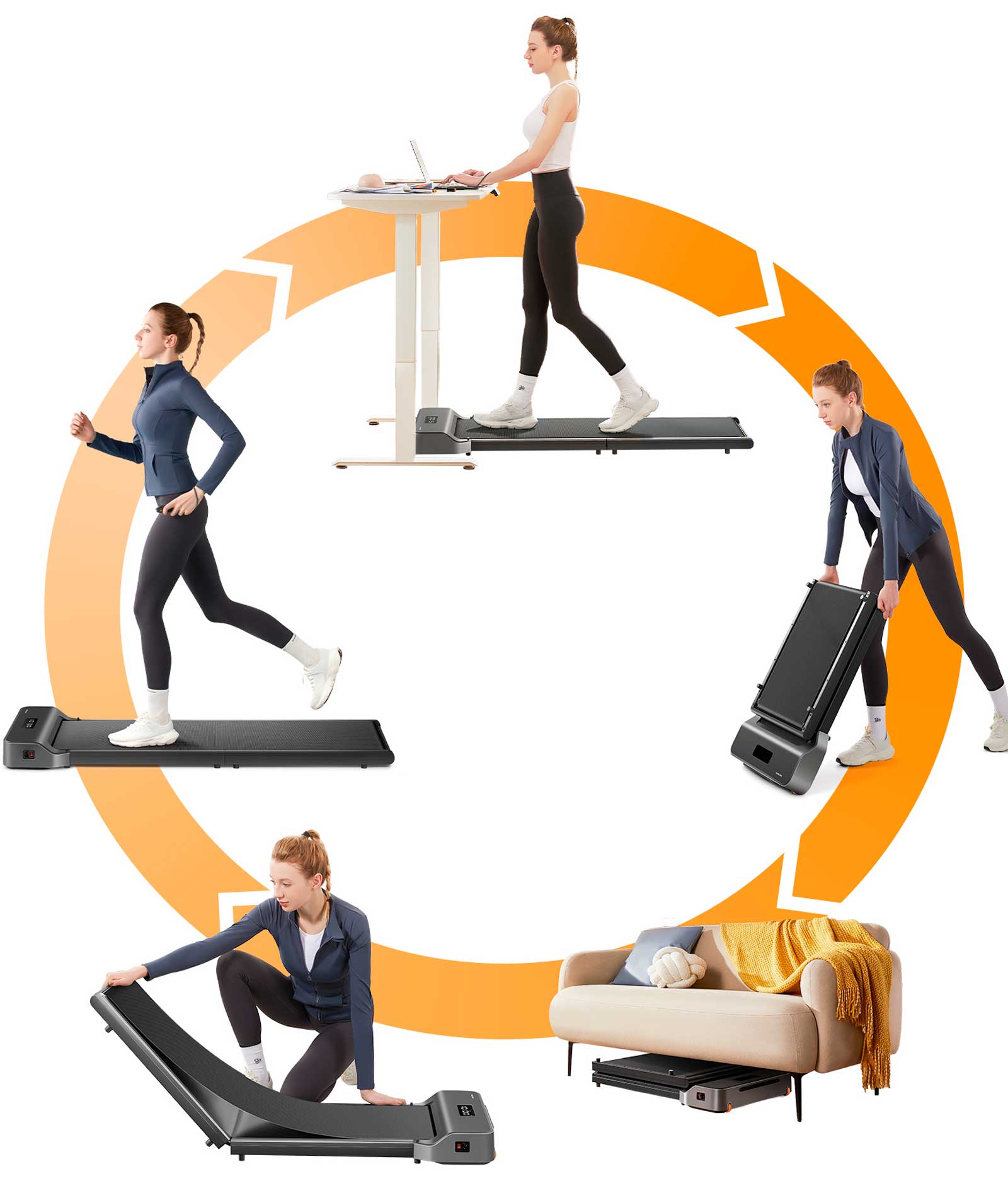 Складная конструкция дорожки для ходьбы KingSmith WalkingPad Z1 позволяет удобно разместить дорожку в углу комнаты, под кроватью или в шкафу. Предусмотренные колесики позволяют перемещать дорожку, не прикладывая много усилий.