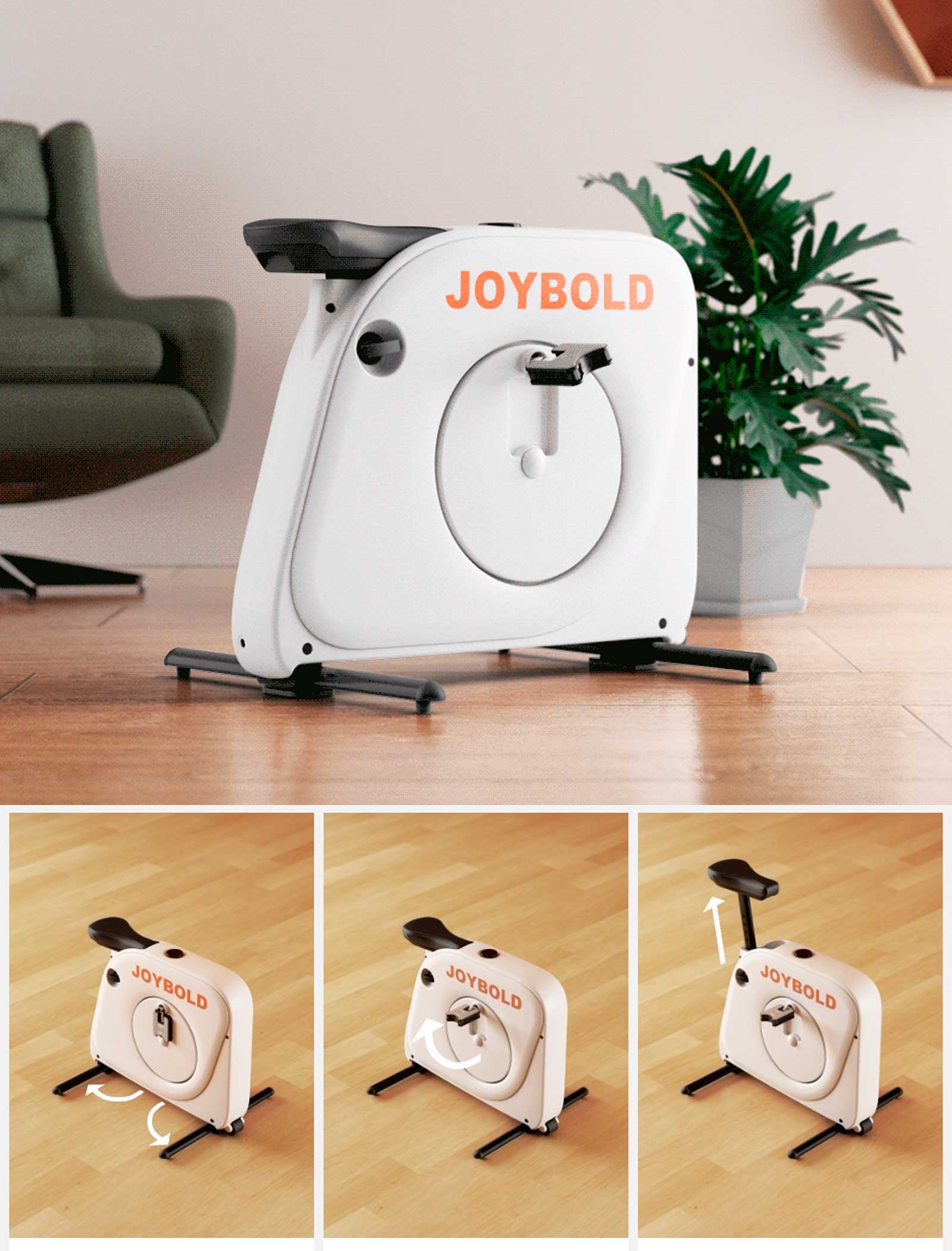 Подходит для роста от 110 до 190 см. Этот велотренажёр могут использовать все члены семьи. Не требует сборки — готов к использованию сразу после распаковки. Складная конструкция рамы. Достаточно открыть коробку, разложить раму и