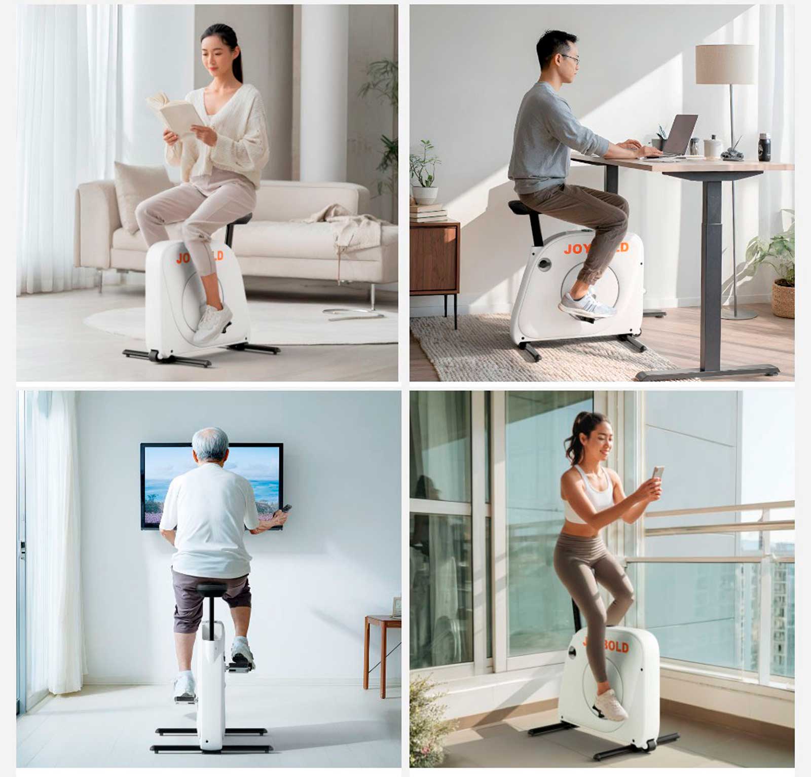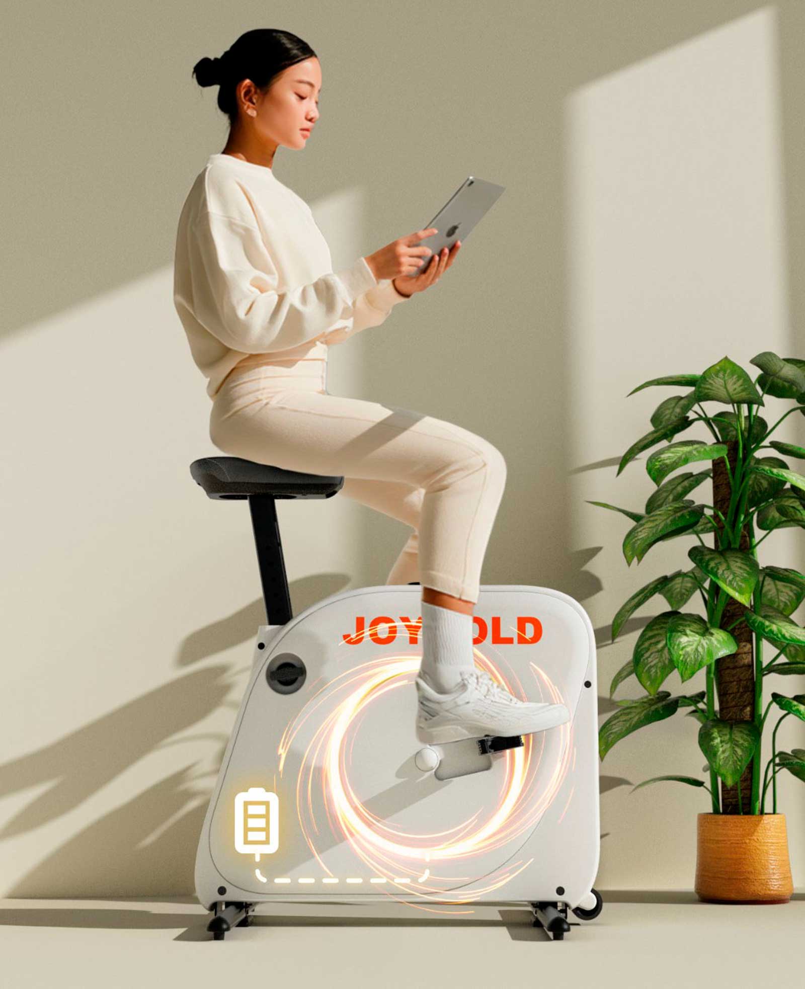 Как только вы начинаете крутить педали, тренажёр автоматически включается. Никаких кабелей питания — можно свободно перемещать и ставить в любом месте. Встроенный литий-ионный аккумулятор 2200 мА·ч обеспечивает бесперебойную работу