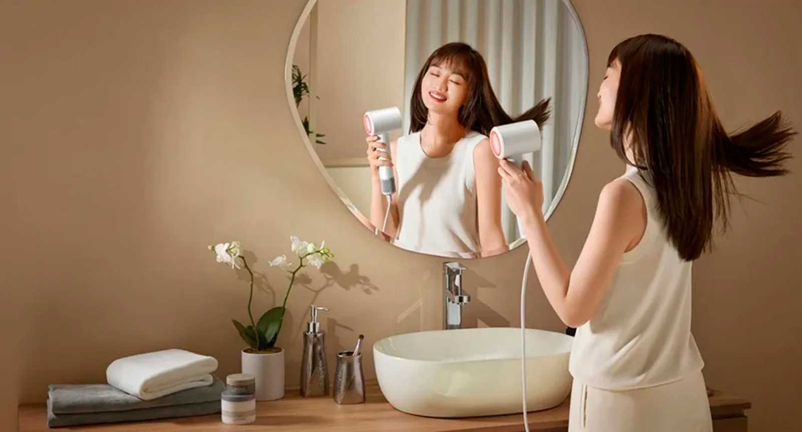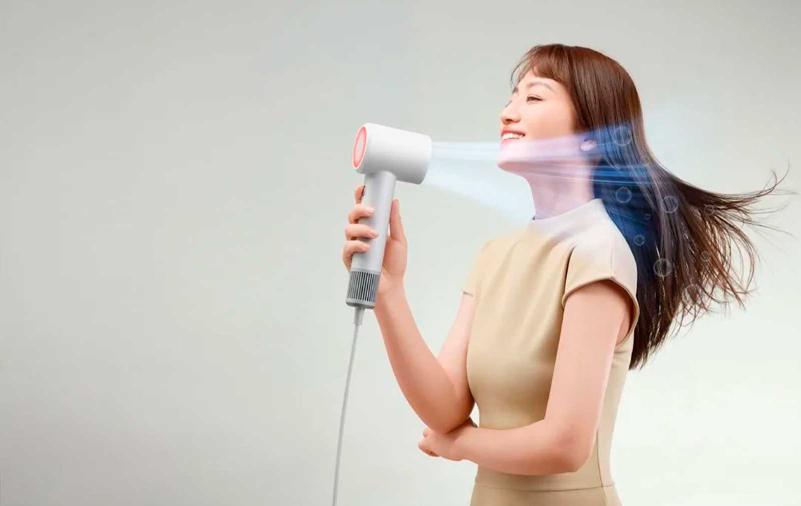 Фен для волос Xiaomi Mijia High-Speed Hair Dryer H501 SE выпускает около 200 млн отрицательных ионов, что нейтрализует статическое электричество и делает волосы более послушными.