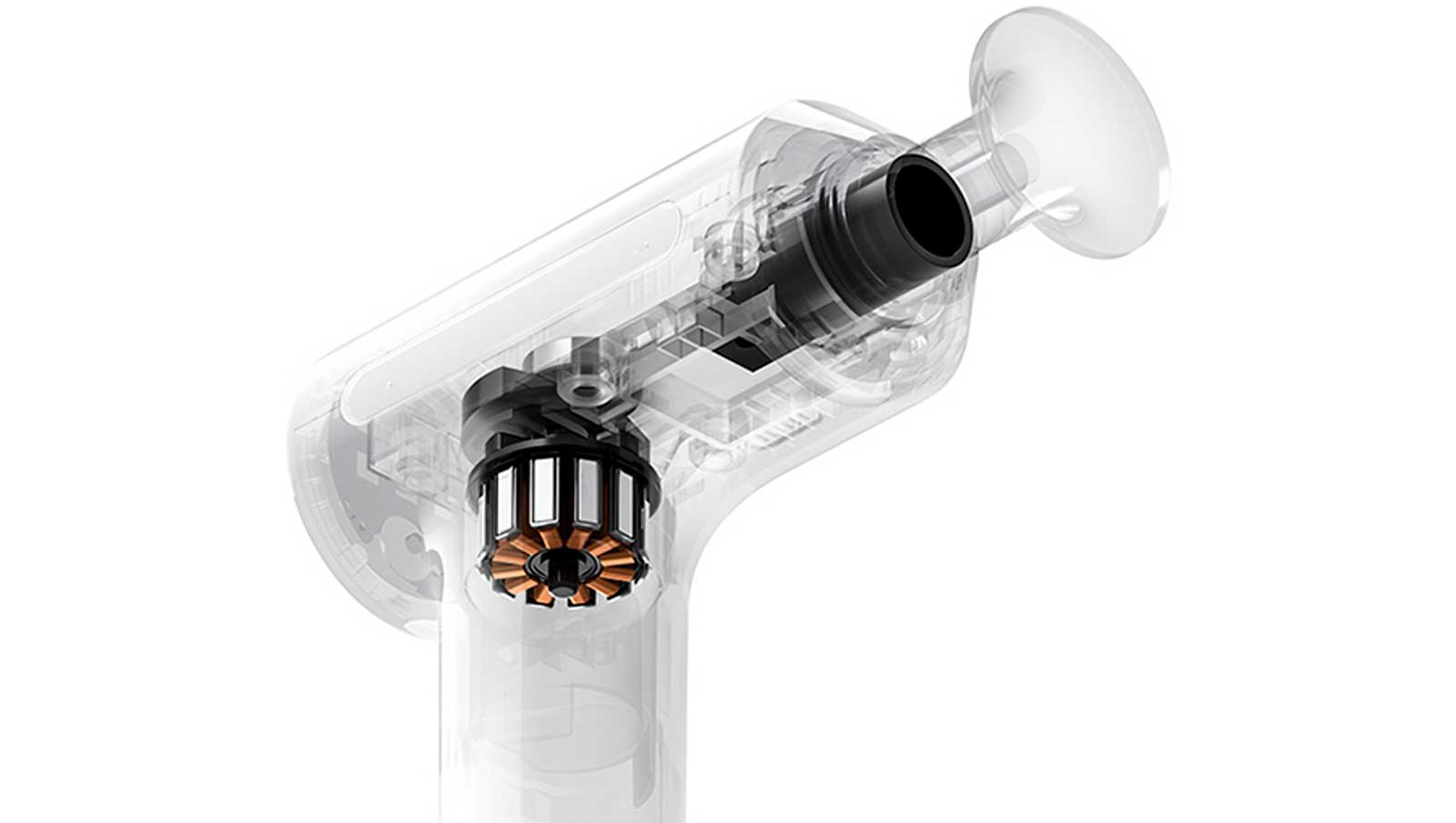Вес массажера составляет всего 815 г. Его удобно держать одной рукой, а также можно брать с собой в поездки — он не займет много места в багаже.