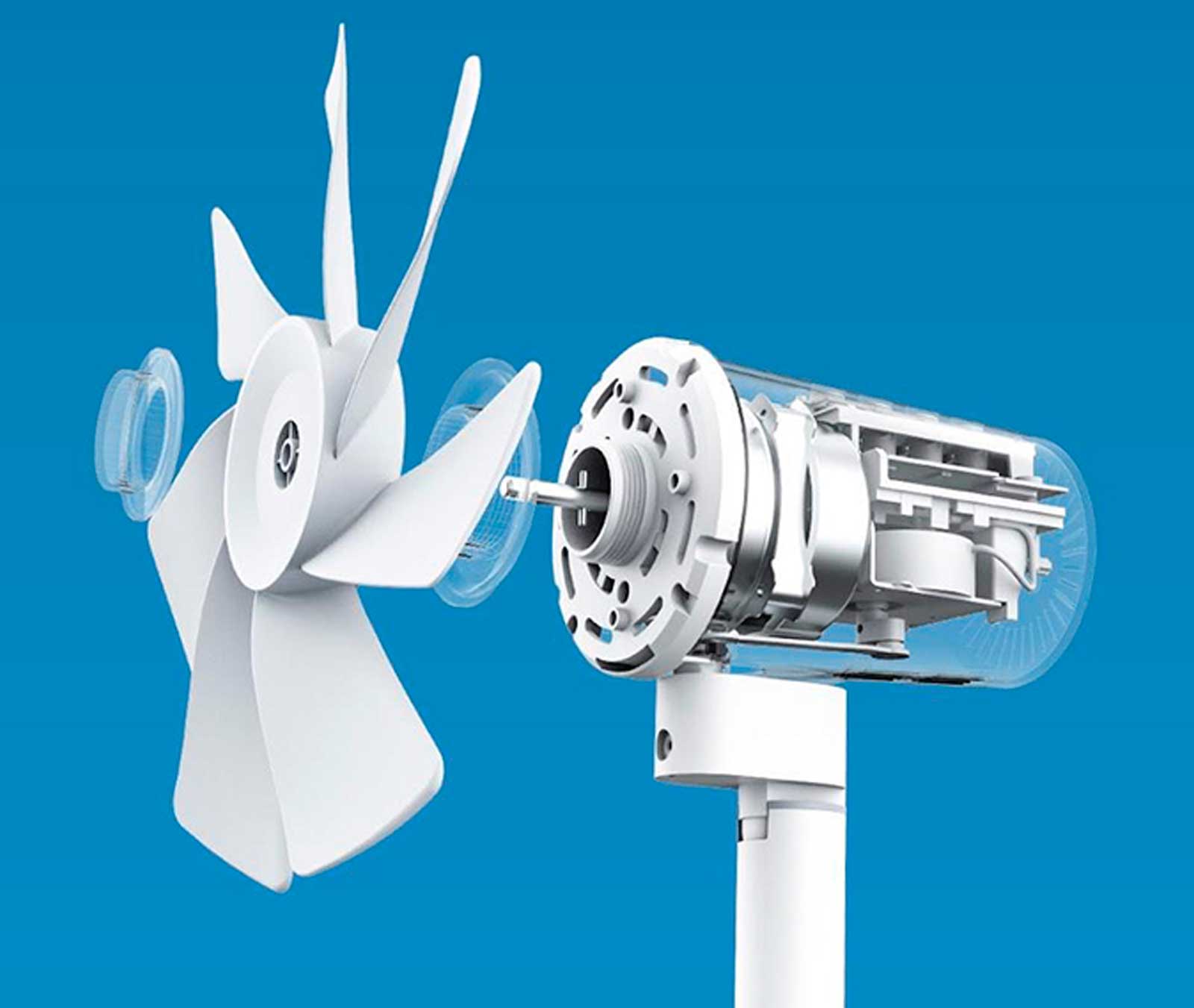 Напольный вентилятор Xiaomi Mijia Floor Fan оснащен 7-лопастной крыльчаткой особой формы, собирающей окружающий воздух в объемный поток и создающей естественный и мягкий ветерок. Именно она переводит вращение вала электродвигателя в