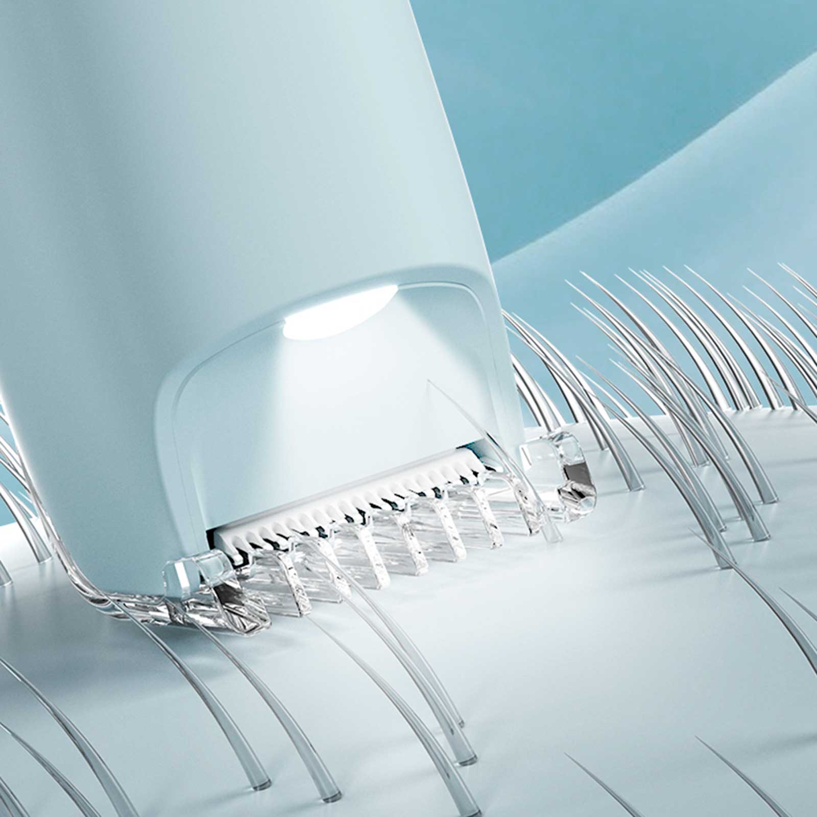 Оснащён ярким светодиодным светом, который автоматически загорается во время использования. Освещает труднодоступные участки, такие как лицо, подмышки или линия бикини. Он позволяет точно находить и удалять даже самые тонкие и